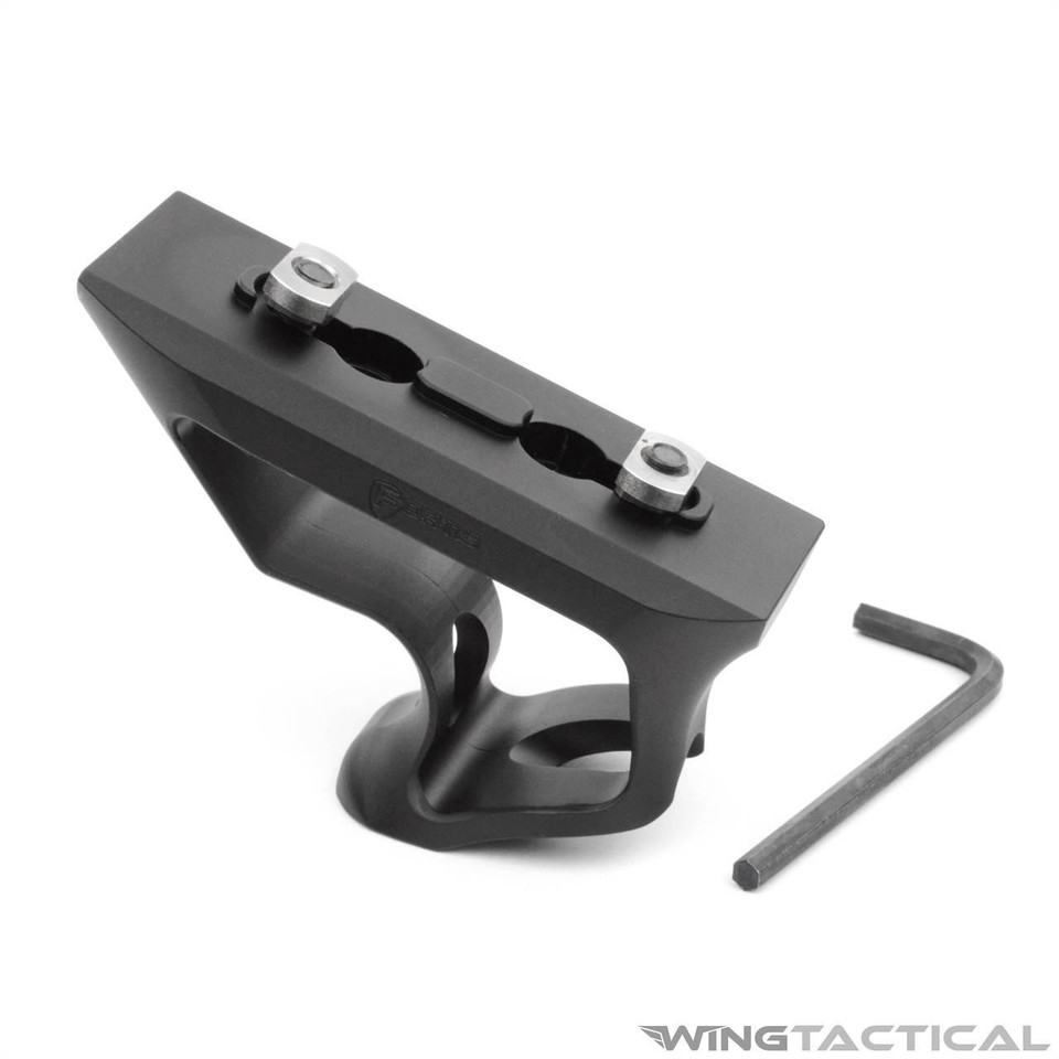 The angled grip presents a cleaner profile than its vertical brother. This makes it less likely to hang on gear or brush. Regardless of model, most people find that mounting the angled grip as far forward as possible on the rail yields maximum performance.