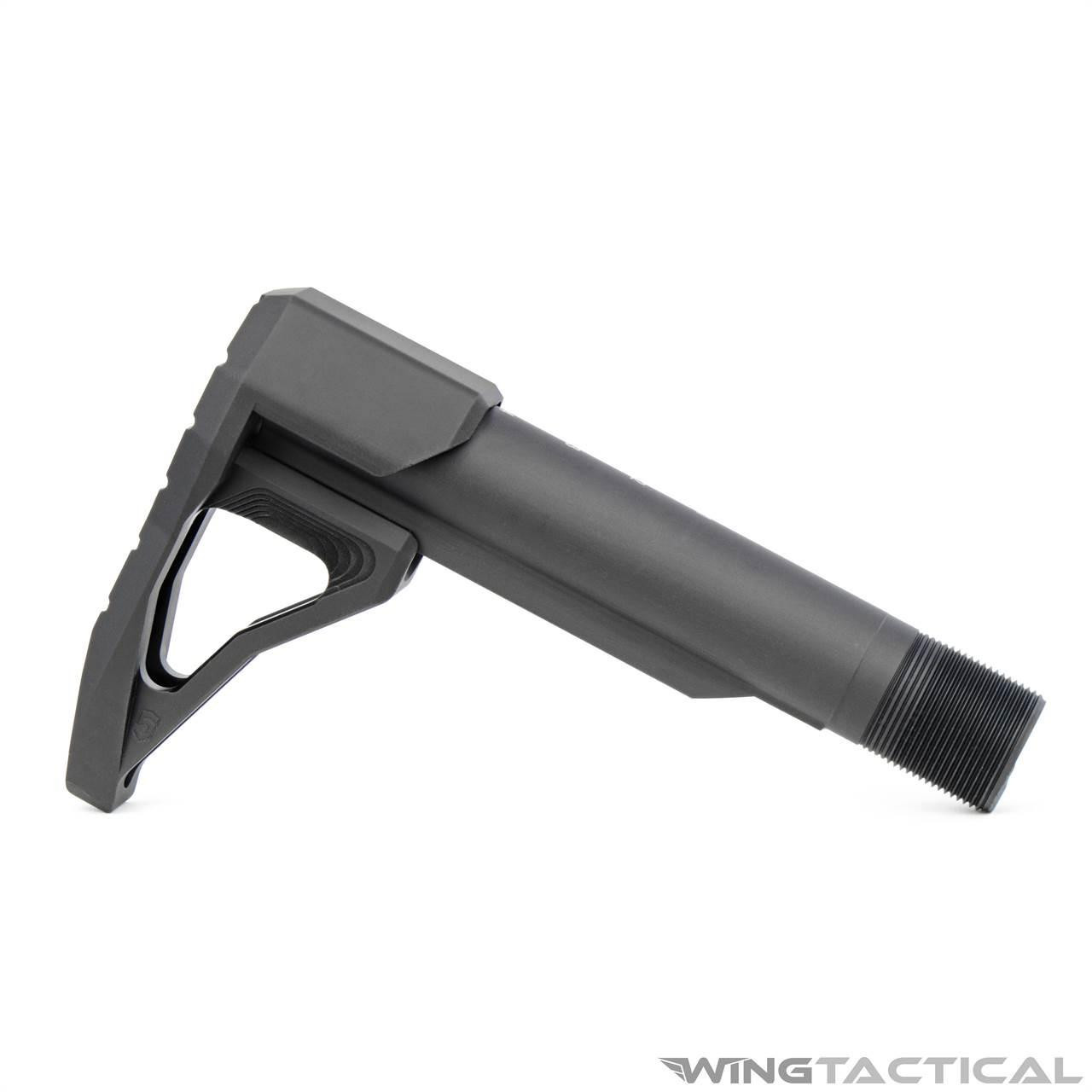 The Phase 5 Tactical Universal Mini Stock is one of the lightest stocks you can find. The best thing about this UMS is that it can be installed in different types of buffer tubes: Mil-Spec carbine buffer tubes, cylindrical buffer tubes, rifle-length buffer tubes, and more. Its minimalist design is ideal for long carries, and its small profile makes it perfect for close-quarters maneuvering, in combat or in home defense. It has a lightweight, compact design, and it’s comfortable and compatible with any firing stance.