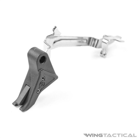 The Agency Arms Drop-In Trigger for Glock 43 features a flat-faced trigger profile with a small hook at the bottom. The included polished steel trigger bar reduces friction, resulting in a smoother trigger pull. Moreover, this trigger is designed with minimized pre-travel and a rapid reset, ideally for fast and precise shooting.