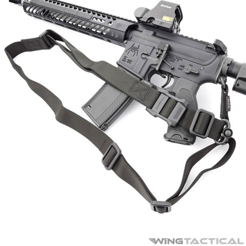 - Heavy-Duty push-button QD sling swivels for quick transition between single-point and two-point operation