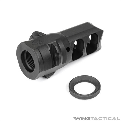 The inclusion of a crush washer enables you to install it immediately upon arrival. The muzzle brake will fit securely on .223 / 5.56 barrels threaded at ½ x 28 TPI. For those who are interested, this muzzle device is fully compatible with the new Fortis Blast Mitigation Device to reduce concussion and blast. Order yours today for an improved experience using your AR rifle.