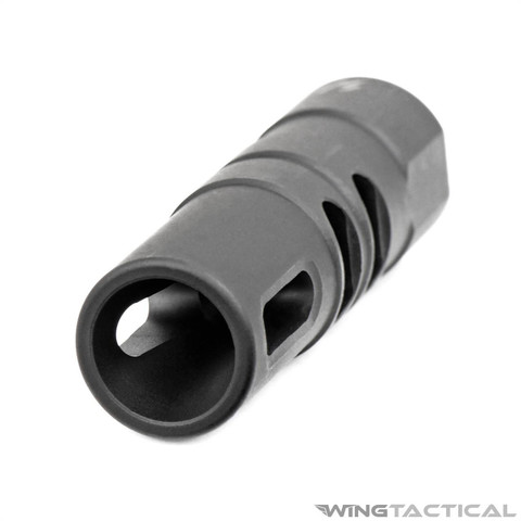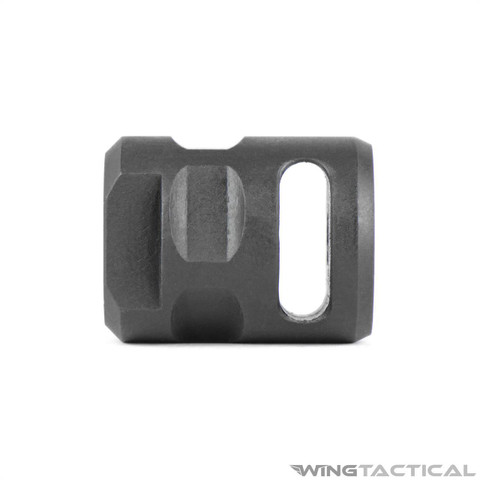 The large surface area of this single-chamber muzzle brake enables it to reduce recoil more substantially than similar devices. The strong steel construction of this device also allows it to double as a glass breaker. Order yours today for one of the finest compensators in the shooting community.