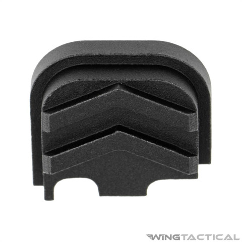 There's a viable benefit to using this new Glock slide cover plate. The cover has a pair of deep chevrons machined into its rear surface. They angle upward and point right at the center of your rear sight. This texture naturally guides your eye into the perfect sight alignment. So, something as easy as installing a new slide cover plate could make you a more efficient shooter. Additionally, Tyrant CNC offer their slide cover plate in several different colors. You can stay with black, or you can dress up your Glock and color match your guns other custom touches.